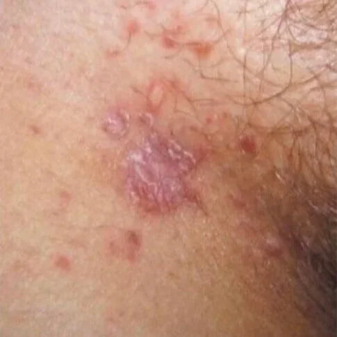 Very common small, sometimes painful bumps/razor burns or due to ingrown hairs